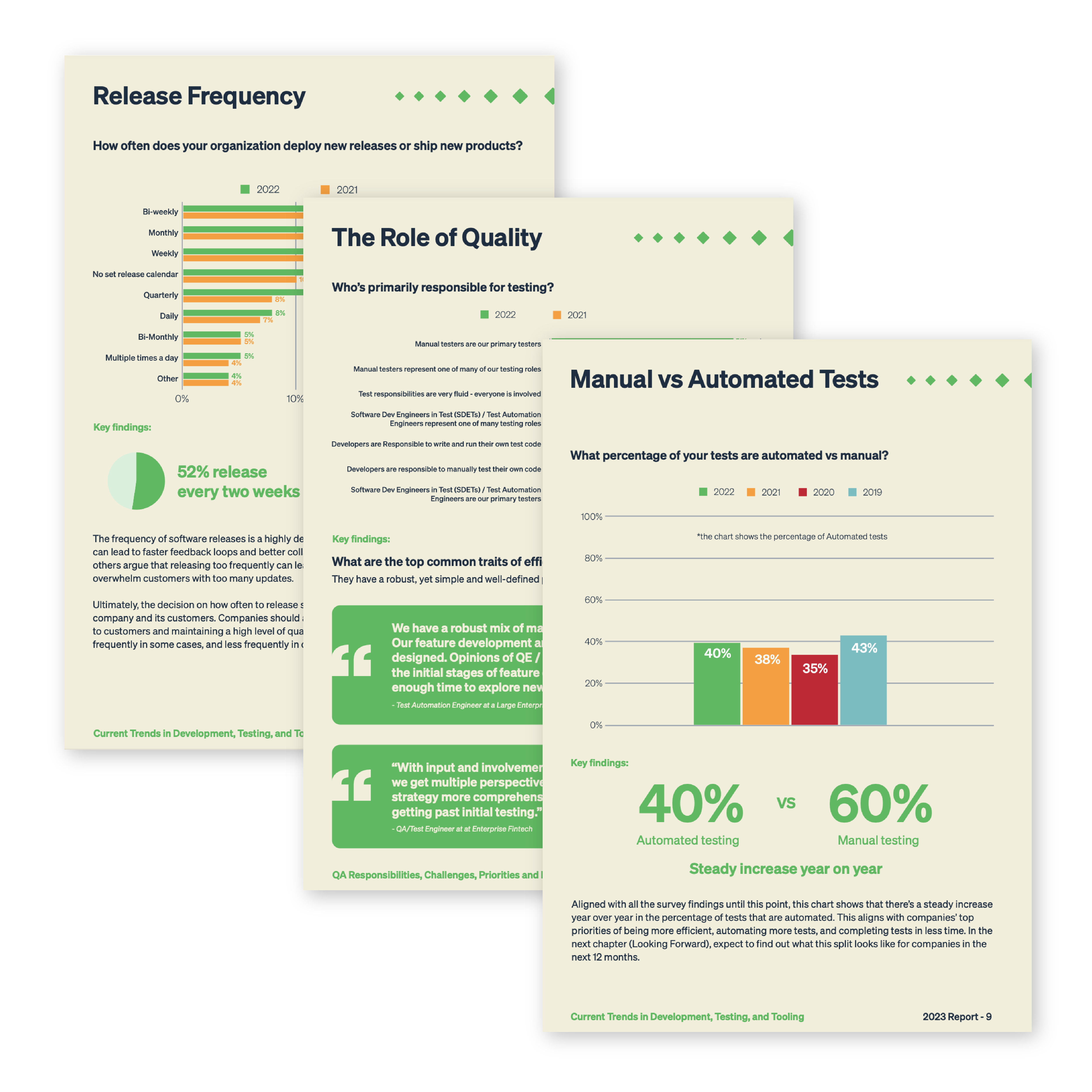 像您这样的团队在 2023 年进行测试的情况如何? 在这份报告中,我们揭示了有关测试自动化采用的令人惊讶的数据、有关测试的业务影响和投资回报率的问题,以及人们目前围绕质量的主要目标。